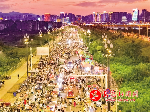夕陽欲頹,夜幕未至之際,安康東壩漢江大橋下夜市的“煙火氣”開始彌漫開來。