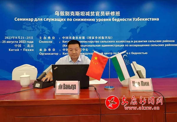 烏茲別克斯坦是上海合作組織框架內(nèi)的重要國家,是中國的友好鄰邦和全面戰(zhàn)略合作伙伴。為積極落實中烏兩國元首指示精神,中國農(nóng)業(yè)農(nóng)村部(國家鄉(xiāng)村振興局)高度重視中烏減貧交流中的能力建設(shè),本次研修班參訓(xùn)學(xué)員多達(dá)9500余人,在中國歷年的國際減貧培訓(xùn)中前所未有。安康《小玩具做出大文章——安康市大力發(fā)展毛絨玩具產(chǎn)業(yè)幫助群眾實現(xiàn)就業(yè)增收》案例,經(jīng)省、市鄉(xiāng)村振興局推薦,作為陜西省唯一減貧案例,于8月24日下午,由安康市人社局副局長李萬華,向烏茲別克斯坦基層一線減貧官員在線進(jìn)行經(jīng)驗講述。