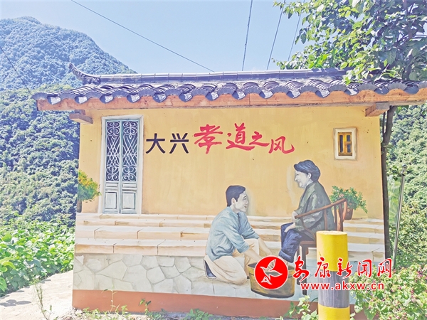 沿G541國道一路駛?cè)肽蠈m山鎮(zhèn),沿線的彩繪垃圾房掩映在農(nóng)田屋舍之間,垃圾房上都畫著以“大興孝道之風(fēng)”“重視子女教育”等新民風(fēng)十條為主題的精美情景畫,輔之以青瓦飛檐,猶如一處處景觀小品融入南宮山腳下的連綿風(fēng)景。