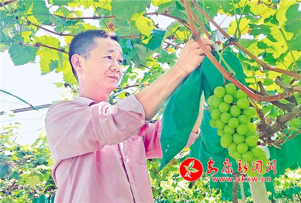 葡萄園負(fù)責(zé)人石洪寶認(rèn)真地察看果子的長(zhǎng)勢(shì),眼里滿是豐收的喜悅。“今年葡萄雖然在掛果期受到雨水影響,但是整體長(zhǎng)勢(shì)還不錯(cuò),再過幾天就可以開園采摘了。”拆開一個(gè)套袋,晶瑩如玉的陽光玫瑰葡萄顆顆飽滿渾圓,濃郁的果香瞬間涌入鼻腔。石洪寶笑著說:“這可是精心挑選出來的好產(chǎn)業(yè),現(xiàn)在全村以陽光玫瑰葡萄種植為主,共發(fā)展100畝左右,產(chǎn)業(yè)效益很不錯(cuò),葡萄已經(jīng)成為帶動(dòng)村民穩(wěn)定增收的‘致富果’。”