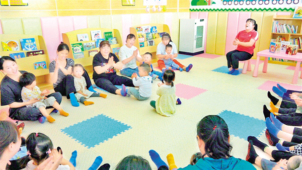 9月7日,在城關鎮(zhèn)旱壩村養(yǎng)育中心,家住附近的居民趙文婭每天都會帶著一歲四個月的孩子沈星宇來上課。