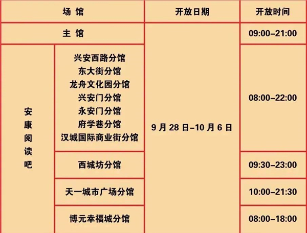 中秋、國(guó)慶期間,我市持續(xù)陰雨天氣,為加大文旅惠民力度,豐富文旅服務(wù)供給,提升文旅服務(wù)質(zhì)量,使廣大市民和游客度過(guò)一個(gè)安定、祥和、愉快的假期。安康市中心城區(qū)各文博場(chǎng)館10月1日至10月6日將適當(dāng)延長(zhǎng)場(chǎng)館開放時(shí)間。安康博物館、安康市群眾藝術(shù)館、安康市藏一角博物館開放時(shí)間延長(zhǎng)至晚19:00。安康市圖書館、安康美術(shù)館開放時(shí)間延長(zhǎng)至晚21:00。
