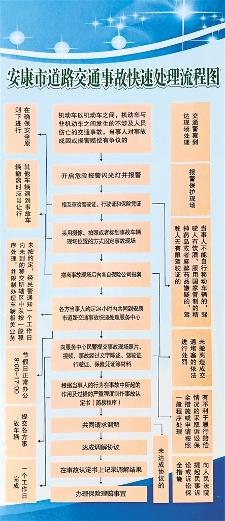 為減少因發(fā)生交通事故導(dǎo)致的擁堵,提高交警交通事故處理工作效率,提供快捷的車輛保險(xiǎn)理賠維修等相關(guān)服務(wù),緩解交通壓力,保障市民安全暢通出行。2015年我市成立了道路交通事故快速處理服務(wù)中心(以下簡(jiǎn)稱快處中心)受理安康市城市規(guī)劃區(qū)內(nèi)(包括漢濱區(qū)、高新區(qū)、瀛湖風(fēng)景區(qū))發(fā)生的輕微交通事故。
