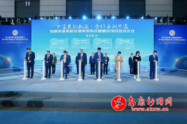 當日下午,借力第七屆絲博會平臺,我市在會展中心國際館舉辦“共享絲路機遇·合作互利共贏”——安康市城市機會清單發(fā)布會暨重點項目簽約儀式。王浩出席會議并致辭,周康成主持會議。省商務廳,西安交通大學、陜西師范大學等高校代表,中國建設銀行陜西分行、陜西環(huán)保產(chǎn)業(yè)集團、北方光電集團等央企國企和“一帶一路”沿線國家、城市的重點企業(yè),陜西省河北商會、秦商總會等商協(xié)會代表160余人參加會議。