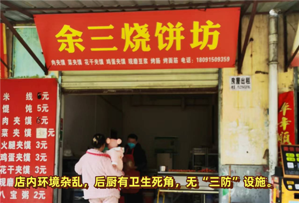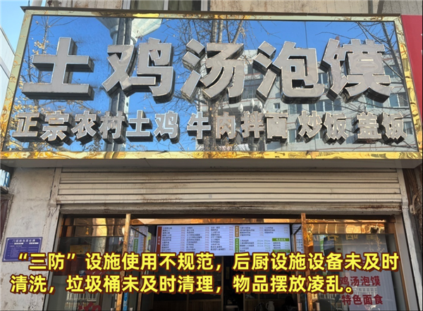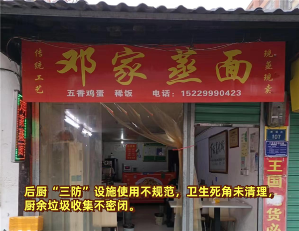 店內(nèi)環(huán)境雜亂,后廚有衛(wèi)生死角,無(wú)“三防”設(shè)施。