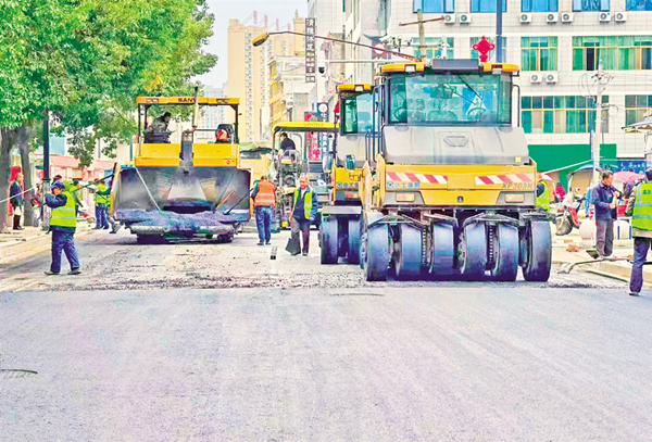 中心大街路面鋪設(shè)施工現(xiàn)場。