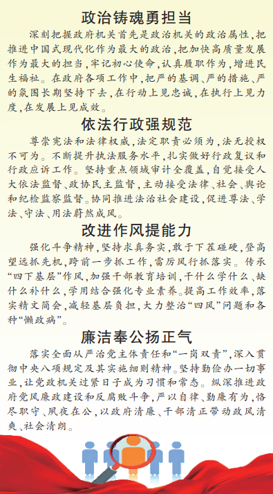 以新一輪機(jī)構(gòu)改革為契機(jī),扎實(shí)鞏固主題教育成果,轉(zhuǎn)變職能提升效能,狠抓政府自身建設(shè)。