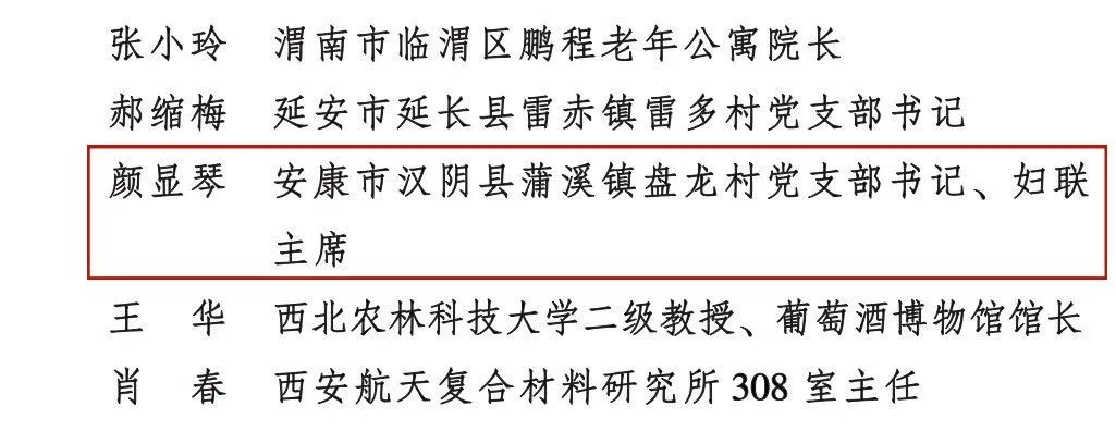 其中,安康市漢陰縣蒲溪鎮(zhèn)盤龍村黨支部書記、婦聯(lián)主席顏顯琴獲得“全國三八紅旗手”稱號(hào)。N3K安康新聞網(wǎng)