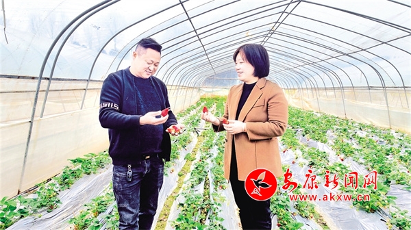 雙乳鎮(zhèn)黨委書記柳楊(右)走進草莓園