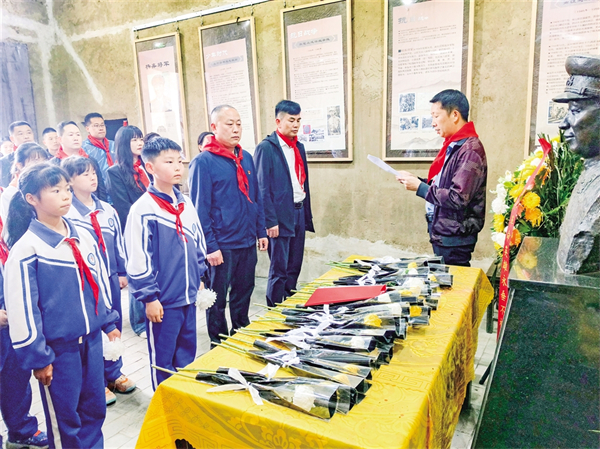 ▲ 4月1日,漢陰縣蒲溪鎮(zhèn)小學(xué)教育集團(tuán)師生代表在楊棄將軍故居開展主題黨日活動。鄧永新 攝