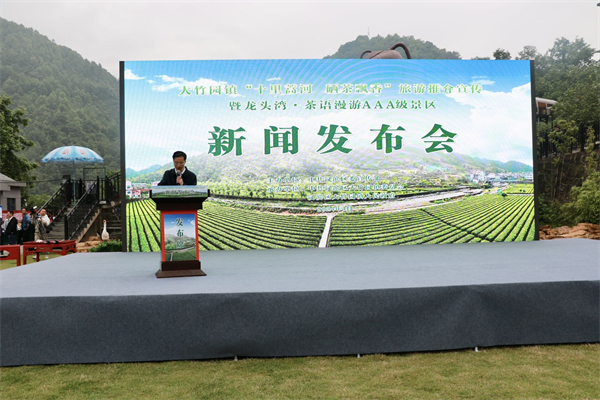 發(fā)布會上,大竹園鎮(zhèn)人民政府鎮(zhèn)長鄭濤向大家介紹了大竹園鎮(zhèn)茶旅融合及龍頭灣茶語漫游景區(qū)有關(guān)情況,龍頭灣茶語漫游景區(qū)形象大使單東培做了景區(qū)推介。