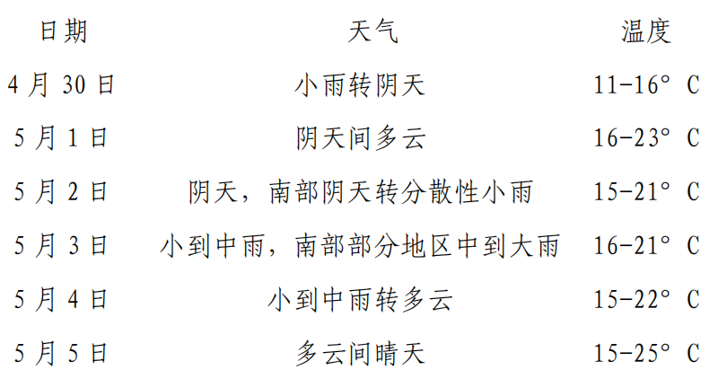 本網(wǎng)訊 4月30日,市氣象臺發(fā)布“五一”專題預(yù)報:預(yù)計今天白天我市小雨轉(zhuǎn)陰天,“五一”假日期間,1—2日全市以陰天到多云天氣為主,南部有分散性小雨,3—4日我市有一次降水天氣過程,全市大部小到中雨,南部部分地區(qū)中到大雨。具體預(yù)報如下:
