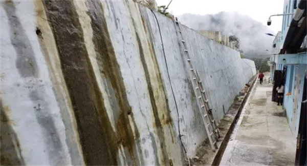 紫陽(yáng)縣洞河鎮(zhèn)云峰村小米溪溝滑坡治理后修筑的擋墻。吳遠(yuǎn)順 攝