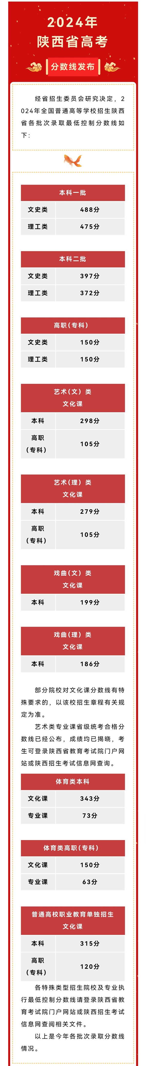 本網(wǎng)訊 6月24日,經(jīng)省招生委員會(huì)研究決定,2024年全國普通高等學(xué)校招生陜西省各批次錄取最低控制分?jǐn)?shù)線如下: