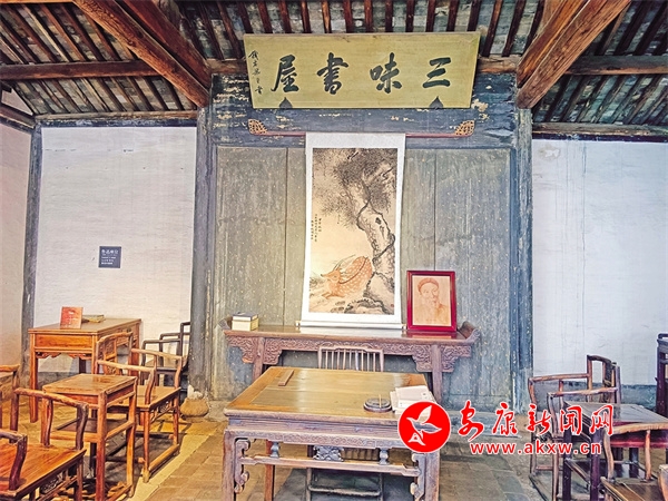 一條小河從魯迅故居門前流過(guò),烏篷船在河上晃晃悠悠。百草園綠意蔥蘢,何首烏、覆盆子還如魯迅筆下那般生機(jī)勃勃。三味書屋一切似乎還如舊時(shí)模樣,抱柱上掛著一聯(lián)——至樂(lè)無(wú)聲唯孝悌,太羹有味是詩(shī)書。魯迅的座位處在上首,桌上還刻著“早”字。如今的“故園”風(fēng)光旖旎,只有回到歷史才有魯迅筆下“風(fēng)雨如磐”的況味。