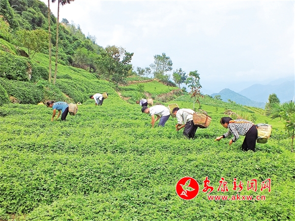 7月18日上午,在平利縣興強(qiáng)富硒茶業(yè)專業(yè)合作社的絞股藍(lán)基地里,茶農(nóng)們拎著籃筐,嫻熟地采摘絞股藍(lán)嫩芽。當(dāng)天下午,生產(chǎn)線上的機(jī)器正高速運(yùn)轉(zhuǎn)著,工人們行走在機(jī)器之間忙著絞股藍(lán)茶加工制作,濃濃茶香四溢,彌漫了整個(gè)廠房。