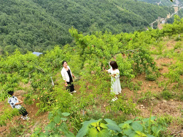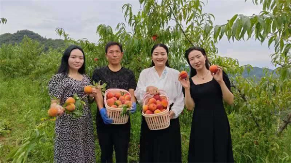 “哇!這桃子太多了,齊天大圣來了都舍不得走。口感不錯,連蜜蜂都喜歡吃,F(xiàn)在兩三萬斤黃桃已經(jīng)成熟,急待銷售,歡迎廣大朋友們前來采摘!”“這漫山遍野的桃子,個頭大、味道鮮美,急待銷售,在這里采摘桃子,不僅可以吃到新鮮的桃子,還可以欣賞到美麗的風(fēng)景”……賢話多多、錦園花開英子、王蓉顧不上休息,走進桃園,通過直播、抖音、短視頻幫助陳顯攀推銷黃桃。當(dāng)天,網(wǎng)上下單訂購300余公斤,詢問地址上山采購的人也陸續(xù)到來,陳顯攀焦躁的心情得到緩解。