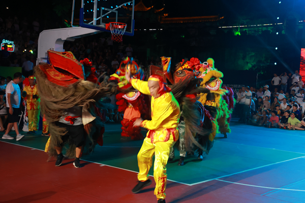 8月27日,賽事已經(jīng)連續(xù)激戰(zhàn)了12個(gè)日夜,每一場(chǎng)比賽都讓觀眾們大飽眼福。晚9時(shí)左右,隨著第一場(chǎng)比賽的終場(chǎng)哨聲響起,整個(gè)廣場(chǎng)的氛圍并沒(méi)有因?yàn)楸荣惖慕Y(jié)束而冷卻,反而因?yàn)榻酉聛?lái)的精彩節(jié)目而更加熱烈起來(lái)!赌蠈m雄獅》作為中場(chǎng)休息的特別節(jié)目火熱上演。隨著激昂的鼓點(diǎn)響起,兩只色彩鮮艷、造型威猛的雄獅在舞獅者的操控下,瞬間吸引了所有人的目光。它們時(shí)而翻騰跳躍,展現(xiàn)出驚人的靈活與力量;時(shí)而憨態(tài)可掬,逗得觀眾捧腹大笑。舞獅者們更是憑借高超的技藝和默契的配合,將雄獅的威猛與靈動(dòng)演繹得淋漓盡致。