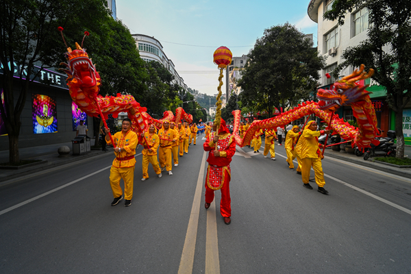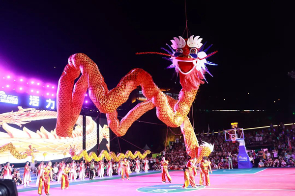 開(kāi)幕式規(guī)模宏大,異常精彩。貴州廣播電視臺(tái)知名節(jié)目主持人、貴州村BA節(jié)目主持人李旭涵、劉子豪兩位重量級(jí)主持人親臨主持,熟練專業(yè)而又激情的引導(dǎo)互動(dòng)為開(kāi)幕式晚會(huì)增添爆棚氛圍。歌手沙寶亮傾情演唱《最初的信仰》《又回首》《暗香》等歌曲,世界散打冠軍、國(guó)家散打隊(duì)主教練許家恒,全國(guó)競(jìng)走冠軍陳珍、全國(guó)青運(yùn)會(huì)冠軍田紫丹的互動(dòng)以及本土節(jié)目《旗開(kāi)得勝》《歡迎你到嵐皋來(lái)》《巴山魔芋情》等將嵐皋豐厚的旅游資源、特色產(chǎn)品、人文風(fēng)情展現(xiàn)得淋漓盡致。無(wú)比酷炫的燈光秀、煙花秀閃耀全場(chǎng),56米巨龍騰空而起,光與影的交織變換構(gòu)成了一幅幅絕妙畫(huà)卷,現(xiàn)場(chǎng)掌聲雷動(dòng),喝彩聲、吶喊聲此起彼伏。