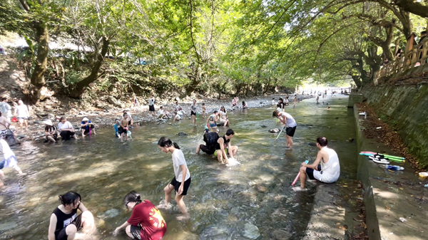 “咱們嵐皋很貼心,早早就推出了合理的一日游、三日游路線,我們白天就來(lái)景區(qū)看美景,晚上去看球賽,真是山美水美賽事美!”來(lái)自西安的游客陳女士說(shuō)。