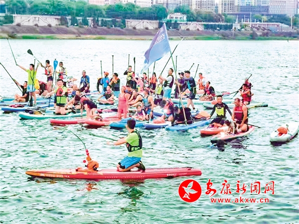 近年來(lái),安康的水上運(yùn)動(dòng),尤其是槳板運(yùn)動(dòng)吸引了越來(lái)越多的人關(guān)注,以其能促進(jìn)人的反應(yīng)能力、四肢協(xié)調(diào)能力、平衡能力等特點(diǎn)成為安康“最熱門”的水上運(yùn)動(dòng)之一,更多市民主動(dòng)參與其中,在運(yùn)動(dòng)中收獲健康和快樂(lè)。很多人在岸邊看見(jiàn)了槳板也會(huì)主動(dòng)上前詢問(wèn),這讓吳忠很高興,他說(shuō),從一開(kāi)始的門可羅雀到現(xiàn)在槳板群的群友已經(jīng)有220多個(gè)人,槳板運(yùn)動(dòng)的魅力讓更多人遠(yuǎn)離了麻將桌、酒桌,放下了手機(jī),意識(shí)到了鍛煉身體的好處。醫(yī)生、警察、個(gè)體經(jīng)營(yíng)者、普通職員……各行各業(yè)的人因?yàn)榕d趣加入了槳板運(yùn)動(dòng)的隊(duì)伍之中,又把槳板的魅力推向更多人,大家彼此介紹、互相熟悉了解,在收獲友誼和健康的同時(shí),逐漸組成了一個(gè)“槳板社會(huì)”。