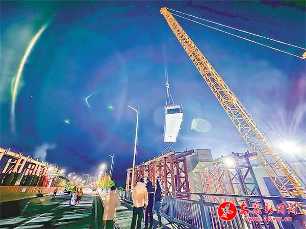 11月25日晚,工程人員檢查橋梁部件。