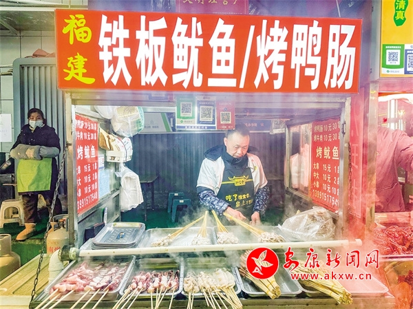 對此,在距離不遠(yuǎn)的金州路雙堤巷擺攤多年的福建人嚴(yán)國強(qiáng)有著更深的感觸。“我來安康有20多年了,主要賣烤魷魚,租個(gè)鋪?zhàn)硬粍澦,就這種小車又方便成本也低。最開始我在市中心廣場附近擺攤,那時(shí)候流動性比較大,顧客也不太放心在我們這種小攤上消費(fèi)。這幾年政府倡導(dǎo)‘夜經(jīng)濟(jì)’,我就干脆搬過來了,今年給我們統(tǒng)一辦理了營業(yè)執(zhí)照、食品攤販登記備案卡,顧客一看這些證件,消費(fèi)起來更安心不說,對我們也是一種保障,能夠固定在一個(gè)地方長久地將生意做下去,水電這些也不用自己再想辦法解決,我很知足了。”