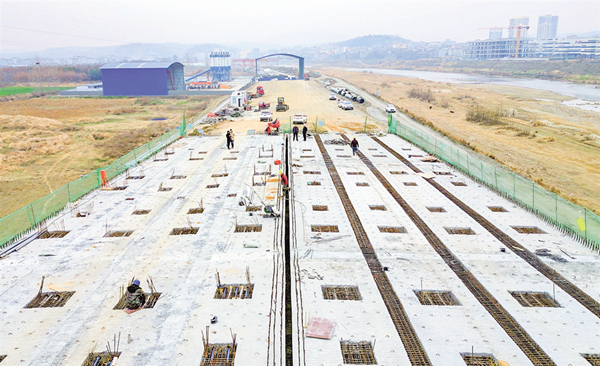 安康高新段項(xiàng)目生產(chǎn)經(jīng)理張占龍介紹,月河快速干道高新段全長3.6公里,目前施工總體進(jìn)度達(dá)65%。近期,重點(diǎn)推進(jìn)控制性工程宋家營大橋建設(shè)。宋家營月河大橋橫跨月河與十天高速,特別是橫跨十天高速部分,因下方有高速行駛的車輛,施工難度和安全隱患較大。項(xiàng)目部在保證安全質(zhì)量的前提下,增加人力物力,大干快上,力爭6月底全線半幅通車。