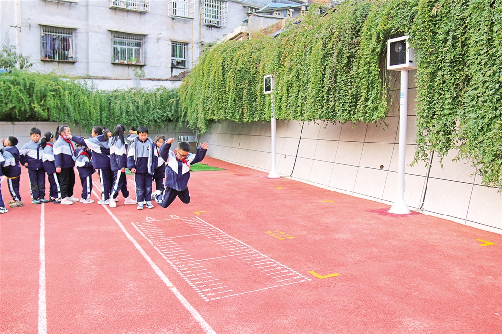 學生在AI智慧體育運動儀器感應區(qū)內跳繩。