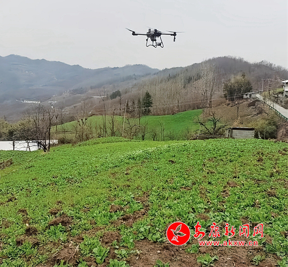 眼下正值春季管護(hù)黃金期,在白河縣冷水鎮(zhèn)興隆村糧油示范田里,無(wú)人機(jī)在油菜田上方來(lái)回穿梭,均勻細(xì)密地噴灑農(nóng)肥,抑制病菌繁殖,提高油菜產(chǎn)量。周紫薇 攝