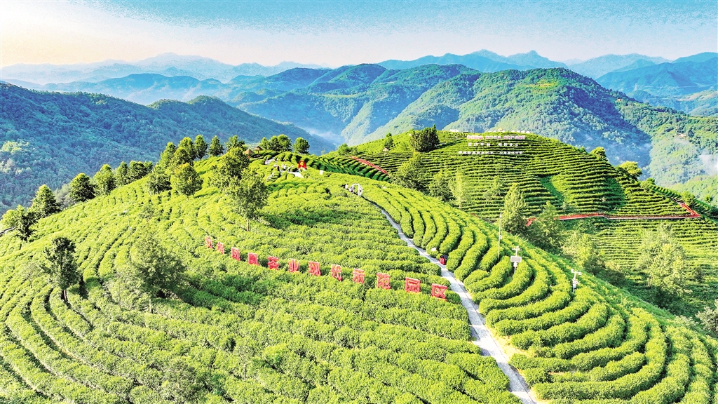 茶山上,茶農(nóng)忙著搶采春茶,游客穿梭其間打卡留影。目睹這熱鬧非凡的景象,蔣家坪村村民的臉上綻放出質(zhì)樸而滿足的笑容。大家驚喜地發(fā)現(xiàn),5年來,老縣鎮(zhèn)無邊光景一時(shí)新,自家茶園風(fēng)光旖旎,吸引眾多游客前來。從賣茶葉到“賣風(fēng)景”,蔣家坪村走出一條茶旅融合新路子,實(shí)現(xiàn)生態(tài)效益與經(jīng)濟(jì)效益“雙豐收”,發(fā)展成果不斷惠及群眾。