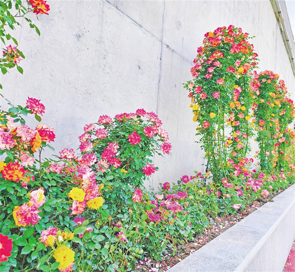 西壩防洪堤下月季長廊 實習記者 張晶晶 攝
