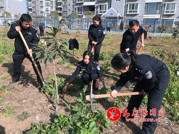 3月12日,市公安局警務(wù)保障處組織民警在高新園區(qū)開展植樹活動。(吳友倫 攝)……