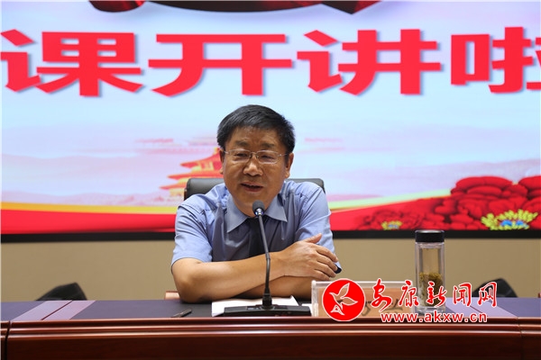 最后,結(jié)合市委組織部安排部署的“黨課開(kāi)講啦”活動(dòng),市院黨組書(shū)記、檢察長(zhǎng)王萬(wàn)興以“品味信仰味道、爭(zhēng)做合格黨員”為主題,從堅(jiān)定共產(chǎn)主義信仰、堅(jiān)定高舉習(xí)近平新時(shí)代中國(guó)特色社會(huì)主義思想偉大旗幟、堅(jiān)定“四個(gè)鐵一般”的干部隊(duì)伍建設(shè)要求等三個(gè)方面闡述了什么是共產(chǎn)黨員信仰,如何品味共產(chǎn)黨人的“五味”信仰,如何堅(jiān)定中國(guó)特色社會(huì)主義信念,教育檢察機(jī)關(guān)的共產(chǎn)黨員必須深入學(xué)習(xí)貫徹習(xí)近平新時(shí)代中國(guó)特色社會(huì)主義思想,錘煉忠誠(chéng)干凈擔(dān)當(dāng)?shù)恼纹犯,全心全意為人民服?wù),做好、做優(yōu)、做實(shí)我們的本職工作,努力爭(zhēng)做合格黨員,隨時(shí)準(zhǔn)備為黨奉獻(xiàn)一切,給全體與會(huì)黨員干警上了一堂生動(dòng)的黨課。