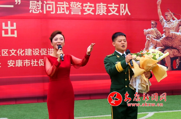 本網(wǎng)訊(通訊員 趙坤)“一聲聲問候,傳遞著樸素和真摯的情感。一句句話語,表達(dá)著淳樸而真實的祝福。今天我們相聚在這里,一起用心來感受真情,用愛來澆灌軍民魚水深情……”話音剛落,臺下響起了雷鳴般的掌聲。8月1日上午,安康市社區(qū)文化建設(shè)促進(jìn)會代表及演職人員一行,走進(jìn)武警安康支隊,為全體官兵獻(xiàn)上了一場美輪美奐的視聽盛宴。