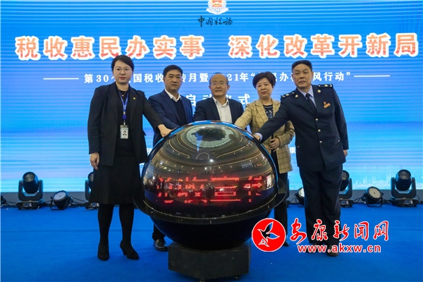 本網(wǎng)訊(通訊員 付明明 張小松)春風(fēng)拂面,稅意暖心。4月1日上午,安康高新區(qū)萬(wàn)達(dá)廣場(chǎng)內(nèi),在安康市稅務(wù)局聯(lián)合高新區(qū)稅務(wù)局和金融、企業(yè)代表共同舉辦的第30個(gè)全國(guó)稅收宣傳月暨2021年“便民辦稅春風(fēng)行動(dòng)”啟動(dòng)儀式上,隨著安康市稅務(wù)局局長(zhǎng)張大峰、高新區(qū)管委會(huì)副主任楊凱,安康市稅務(wù)局總會(huì)計(jì)師汪顯鳳,高新區(qū)稅務(wù)局局長(zhǎng)呂世意和安康萬(wàn)達(dá)廣場(chǎng)商業(yè)管理有限公司總經(jīng)理田玲共同按動(dòng)啟動(dòng)球,以“稅收惠民辦實(shí)事、深化改革開新局”為主題的稅收宣傳月活動(dòng)正式開啟。