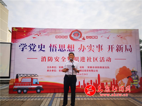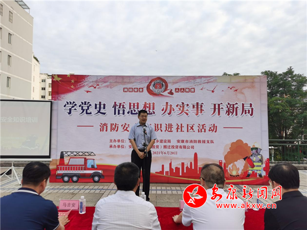 本網(wǎng)訊(通訊員 向橋)6月20日,“學(xué)黨史 悟思想 辦實(shí)事 開新局,消防安全知識(shí)進(jìn)社區(qū)”宣講活動(dòng)啟動(dòng)儀式在山水上城小區(qū)啟動(dòng)。市住建局(市人防辦)副局長(副主任)段平安出席會(huì)議并講話,市移民搬遷公司副總經(jīng)理宋國卿致辭,市消防救援支隊(duì)、市移民搬遷公司和社區(qū)、小區(qū)居民60余人參加活動(dòng)。