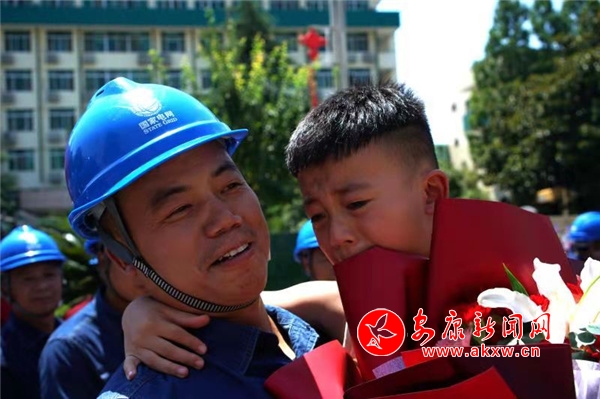 11時(shí)許,搶險(xiǎn)車隊(duì)在漢濱騎警的護(hù)送下,緩緩駛?cè)牍鹃T口,在陣陣掌聲中隊(duì)員們依次走下?lián)岆U(xiǎn)車,他們個(gè)個(gè)精神飽滿、笑容燦爛。“熱烈歡迎國網(wǎng)安康供電公司抗洪援豫突擊隊(duì)的英雄勝利歸來!”“英雄們辛苦了!”……在儀式現(xiàn)場,迎接人員為公司突擊隊(duì)隊(duì)員們拉起橫幅、鼓掌歡呼。