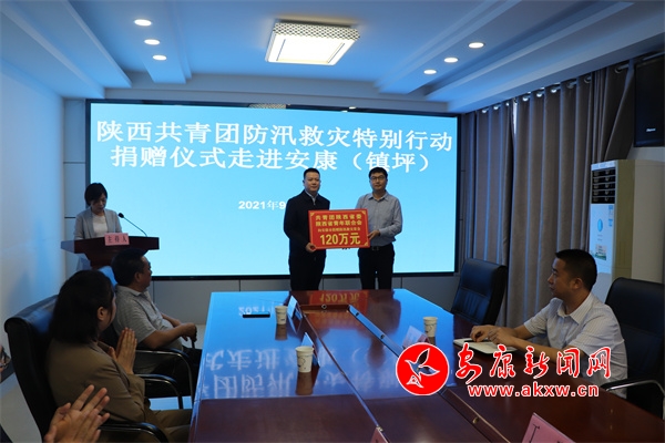 捐贈(zèng)儀式上,李建峰向團(tuán)安康市委轉(zhuǎn)交了向安康捐贈(zèng)防汛救災(zāi)資金120萬(wàn)元的捐贈(zèng)牌,李宗際向鎮(zhèn)坪縣轉(zhuǎn)交了捐贈(zèng)50萬(wàn)元防汛救災(zāi)資金的捐贈(zèng)牌,授予省青聯(lián)副主席梁汝明、徐浩和中國(guó)農(nóng)業(yè)銀行陜西省分行、陜西中博農(nóng)業(yè)科技發(fā)展有限公司、陜西中茂裝飾集團(tuán)有限公司等“‘陜西共青團(tuán)防汛救災(zāi)特別行動(dòng)’公益項(xiàng)目突出貢獻(xiàn)單位(個(gè)人)”榮譽(yù)稱號(hào)。
