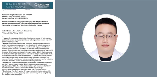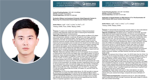 面對失敗,科研小組沒有灰心,而是在失敗中不斷總結(jié)經(jīng)驗,提前投入到2021年的RSNA投稿工作,這一次準備時間更充分,科研討論會頻次更高。在耐心的等待中他們終于迎來了喜訊,賴建東醫(yī)生中稿2篇口頭發(fā)言,姚俊技師長中稿一篇電子壁報,科室在以RSNA投稿為抓手的科研工作中,終于又邁出了堅實的一步。