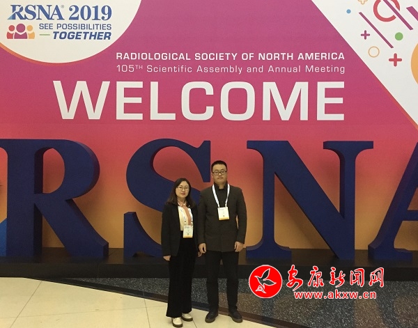 由于臨床工作繁忙,投入到具體投稿工作的只有朱主任和兩名年輕醫(yī)生共3個人,在這一個月的時間里,朱主任親自指導并確定掃描方案,收集、分析數(shù)據(jù),白天還要應對繁重的臨床工作。投稿期間碰到了很多難題,比如第一次用英文寫作要克服語言障礙,第一次向外國網(wǎng)站投稿對流程不熟悉,需要反復琢磨。那段時間,熬夜成了科研小組成員的家常便飯。功夫不負有心人,截至4月12日,科室終于投出了6篇摘要。振奮人心的是,6篇投稿中3篇,中稿率達到了50%,其中朱亞男主任中了1篇口頭發(fā)言和1篇電子壁報,皮之安醫(yī)生中了1篇口頭發(fā)言。2017年11月底,周和平、朱亞男兩位主任及皮之安醫(yī)生應邀前往美國參加了103屆北美放射年會,朱主任及皮之安分別在大會作了發(fā)言。這是安康市放射醫(yī)學專業(yè)第一次參加世界最高級別的學術(shù)會議并做大會發(fā)言,也第一次把安康市中心醫(yī)院的名字展示在世界的學術(shù)講臺,這對經(jīng)濟、交通等相對落后的秦巴地區(qū)地市級醫(yī)院來說無疑是個重大突破。
