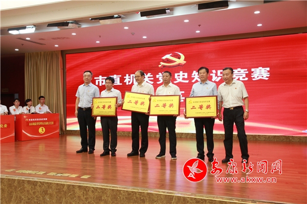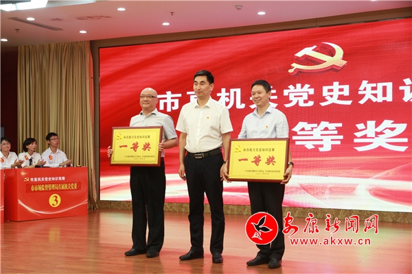 決賽分為個(gè)人必答題、團(tuán)隊(duì)共答題、搶答題、風(fēng)險(xiǎn)題四個(gè)環(huán)節(jié),通過(guò)抽簽的方式確定比賽座次。比賽的過(guò)程中,還穿插了觀眾答題互動(dòng)環(huán)節(jié)。經(jīng)過(guò)緊張的四個(gè)環(huán)節(jié)比拼,最終,市委辦機(jī)關(guān)黨委代表隊(duì)、市委黨校機(jī)關(guān)黨委代表隊(duì)榮獲一等獎(jiǎng),市市場(chǎng)監(jiān)督管理局直屬機(jī)關(guān)黨委代表隊(duì)、市住建局直屬機(jī)關(guān)黨委代表隊(duì)、市政府辦機(jī)關(guān)黨委代表隊(duì)、市委政研室機(jī)關(guān)黨支部代表隊(duì)獲得二等獎(jiǎng)。