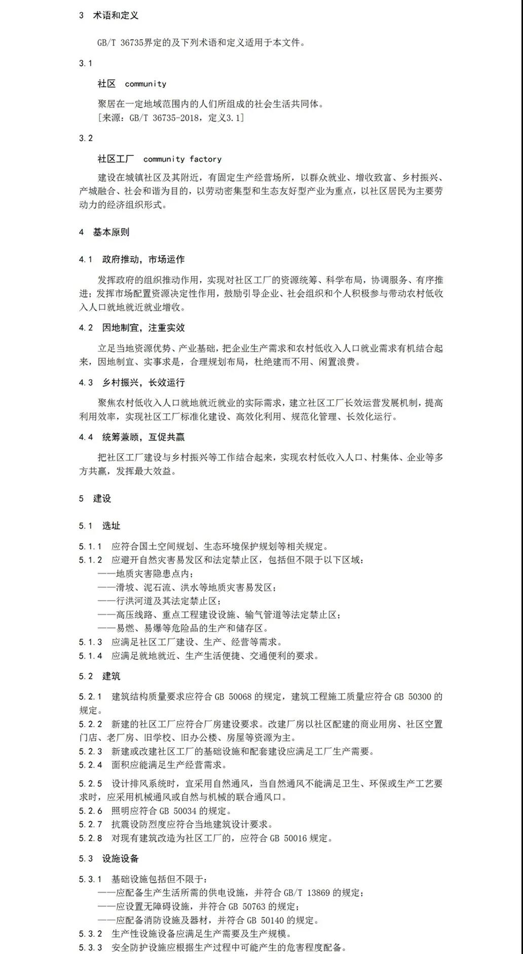 2020年4月21日上午,習(xí)近平總書記來到安康市實(shí)地查看電子加工廠、毛絨玩具廠、服飾公司產(chǎn)品展示廳,對(duì)安康市新社區(qū)工廠發(fā)展模式給予了肯定,并提出關(guān)注工廠規(guī)范化建設(shè)等問題。為貫徹落實(shí)習(xí)近平總書記來陜重要講話精神,4月29日,陜西省政府召開會(huì)議,專題研究陜南扶貧社區(qū)工廠穩(wěn)增長穩(wěn)就業(yè)有關(guān)問題,要求充分認(rèn)識(shí)社區(qū)工廠在對(duì)我省產(chǎn)業(yè)扶貧的重要支撐作用,統(tǒng)籌解決社區(qū)工廠發(fā)展過程中出現(xiàn)的困難和問題。實(shí)踐證明,社區(qū)工廠建設(shè)為解決困難群眾就地就近就業(yè)問題提供了一條切實(shí)可行的道路。陜西省地方標(biāo)準(zhǔn)《社區(qū)工廠建設(shè)與管理規(guī)范》的發(fā)布將為全省社區(qū)工廠建設(shè)與管理提供統(tǒng)一指導(dǎo)標(biāo)準(zhǔn),為各地市推進(jìn)社區(qū)工廠發(fā)展提供規(guī)范和遵循,為全省社區(qū)工廠運(yùn)用標(biāo)準(zhǔn)化工具走上規(guī)范化、高效化發(fā)展之路提供技術(shù)支撐。