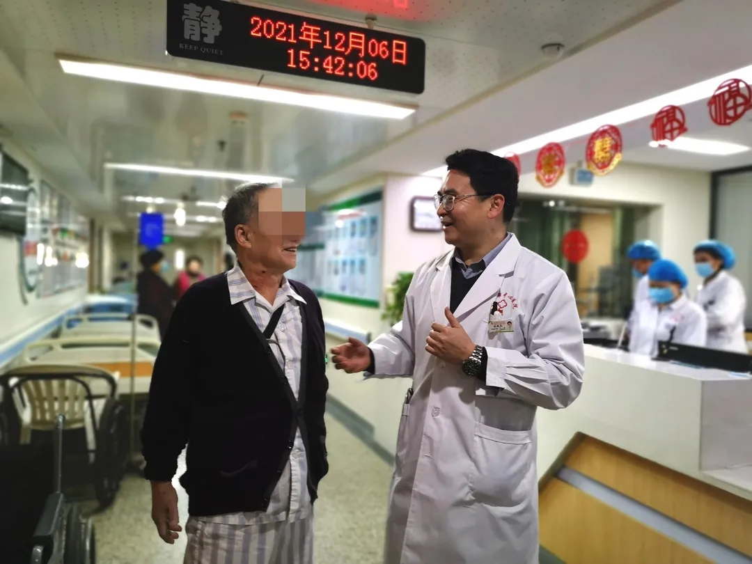 當(dāng)記者再次見到王大爺時,他剛睡醒,很久沒有平躺安穩(wěn)地睡一覺了,起來后在病房走了幾個來回也不覺得累,在一旁看著的主刀醫(yī)生沈桂冬終于放下心來。