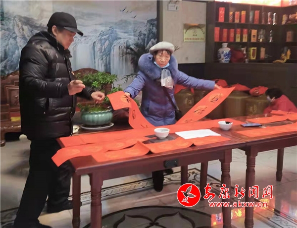 本網(wǎng)訊(通訊員 田虹)瑞雪紛飛,臘月尤寒。自1月20日至26日,安康市延安精神研究會組織部分會員采取集寫分送或分寫集送的方式,先后為安康市亦合安企業(yè)管理有限公司、平利縣新立人力資源管理公司、嵐皋縣瀛湖漢源漁業(yè)公司等會員單位及職工,神河鎮(zhèn)敬老院及街道社區(qū)群眾送春聯(lián)送溫暖。一幅幅鮮紅的楹聯(lián)為即將來臨的虎年春節(jié)增添了濃濃暖意。