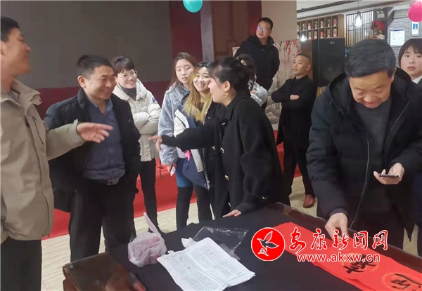 1月22日下午研究會一行來到平利縣新立人力資源公司,現(xiàn)場為企業(yè)職工擬聯(lián)即書,并開展聯(lián)誼活動。"山安水安人自安,天安地安亦合安";“牛存厚德辭舊歲,虎振雄風(fēng)迎新立”“春臨化龍千山秀,福至女媧萬木春”……結(jié)合實(shí)際自擬聯(lián)語,深受歡迎。