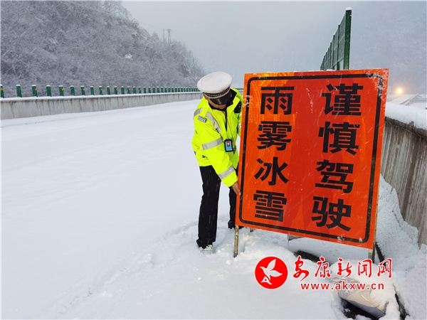 1月28日,我市普降雨雪,部分路段出現(xiàn)大霧、積雪。為有效應(yīng)對惡劣天氣對交通安全的影響,安康交警以雪為令,全警動員,強化惡劣天氣下的道路交通管控、巡查、事故預(yù)防、保暢通等措施,確保轄區(qū)道路安全暢通和群眾平安出行。(周瑞儒/圖文)FZx安康新聞網(wǎng)