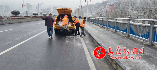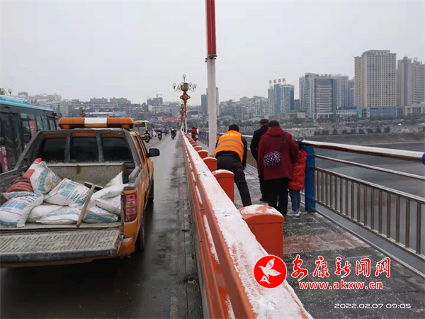 據(jù)了解,7日清晨,安康市市政園林處共投入人力40余人,融雪劑3噸,車輛10臺(tái),對(duì)城區(qū)雷神殿、馬坎天橋、漢江一橋、三橋、南環(huán)干道陳家溝大橋及部分公園集中開展除雪融冰工作。