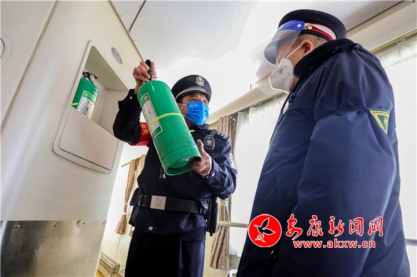乘警來(lái)鴻在列車(chē)上檢查消防器材Zg4安康新聞網(wǎng)