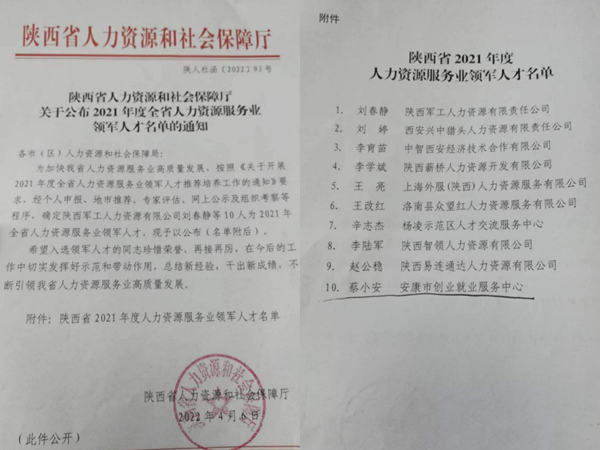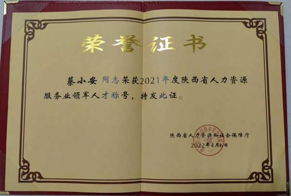 原標(biāo)題:蔡小安同志榮獲”2021年度全省人力資源服務(wù)業(yè)領(lǐng)軍人才”稱號(hào)